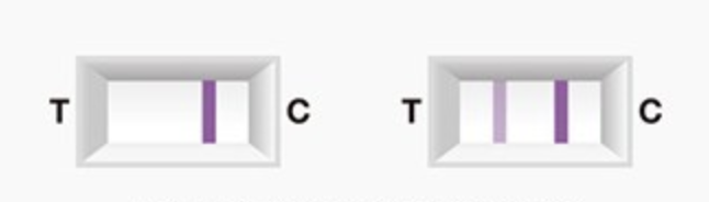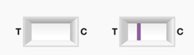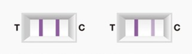 갱년기 테스트기 결과창에는 결과선(T)과 대조선(C)이 있습니다. 두 선의 유무와 진하기에 따라 결과를 아래와 같이 해석할 수 있습니다.