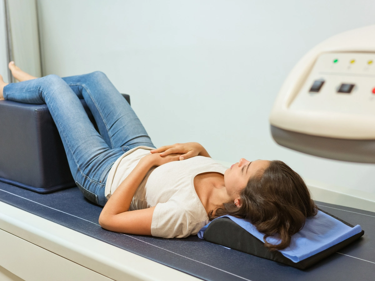 일반적으로는 높은 에너지의 방사선과 낮은 에너지의 방사선을 두 번 촬영하여 골밀도를 계산하는 X-ray 촬영법을 많이 사용합니다.