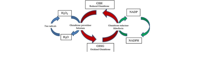 글루타치온에는 환원형, 산화형이 있는데 환원형이 활성산소와 만나 항산화 작용을 거친 후 산화형으로 변환됩니다.