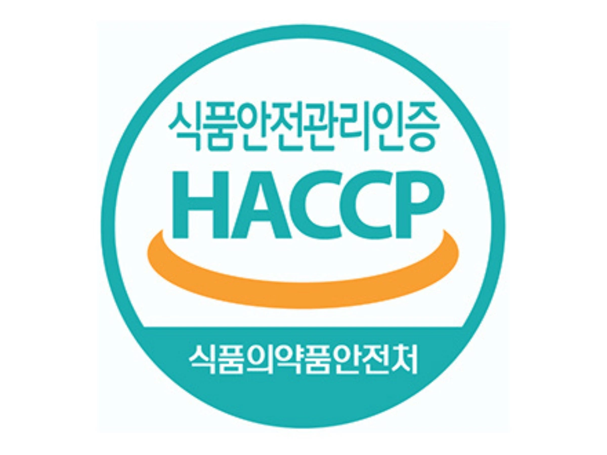 HACCP는 식품이 제조되고 유통되는 과정에 오염 등이 일어나지 않게 관리를 하고 있다는 것을 인증하는 제품이라는 뜻입니다.