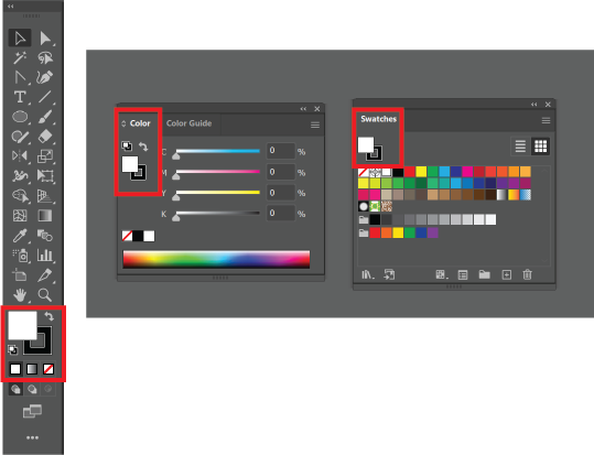 어떤 패널에서든 Fill과 Stroke 영역을 선택하여 원하는 색상으로 변경할 수 있습니다.