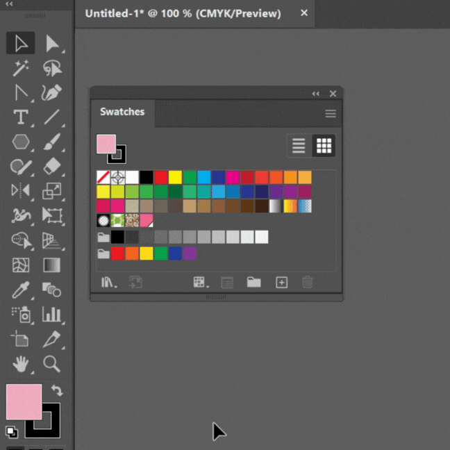 스와치는 즐겨찾기와 같은 개념으로 만약 작업을 하다가 이 색상을 많이 사용하게 될 것 같을 때 스와치로 등록을 해두면 손쉽게 그 색상을 꺼내어 쓸 수 있도록 도와주는 기능입니다. 단색뿐만 아니라 그라디언트, 패턴 등도 스와치로 등록 가능하기 때문에 색상 관리를 하기에 용이합니다.