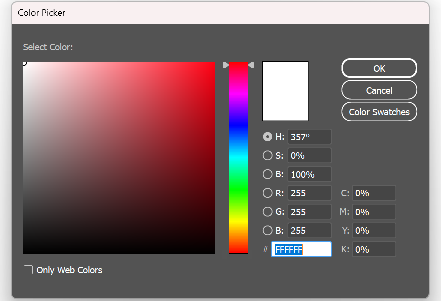 우선 영역을 더블 클릭하면 원하는 색상을 선택할 수 있는 컬러피커 창이 뜨게 됩니다. 정확한 색의 수치를 입력할 수 있습니다.