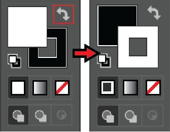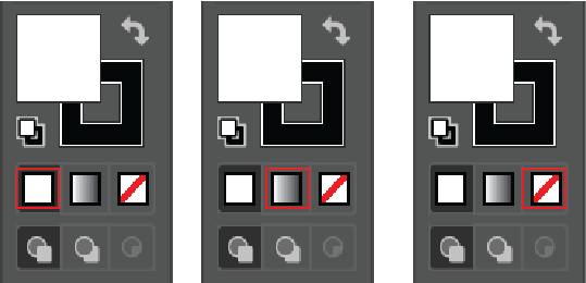 Fill, Stroke 영역 하단에 있는 세 가지는 순서대로 색상, 그라디언트, non color(투명)을 선택할 수 있습니다.
