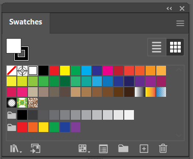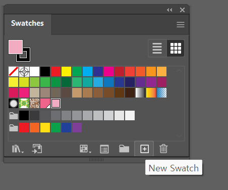 스와치는 즐겨찾기와 같은 개념으로 만약 작업을 하다가 이 색상을 많이 사용하게 될 것 같을 때 스와치로 등록을 해두면 손쉽게 그 색상을 꺼내어 쓸 수 있도록 도와주는 기능입니다. 단색뿐만 아니라 그라디언트, 패턴 등도 스와치로 등록 가능하기 때문에 색상 관리를 하기에 용이합니다.