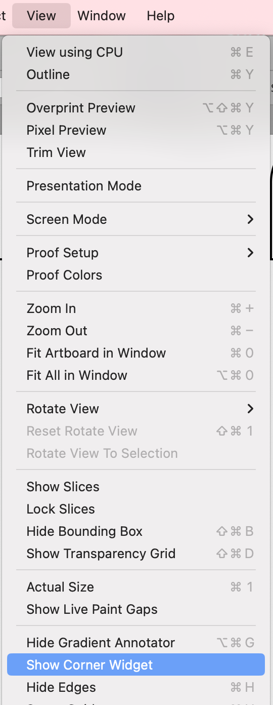 CC버전 이상인데 라이브 코너가 보이지 않는다면 먼저 view -> show corner widget을 클릭해 줍니다. 도형에 따라 라이브 위젯이 안 보일 수도 있는데 이럴 때는 Selection tool(단축키: V)로 도형을 한 번 선택해 준 후 ctrl 키를 누르거나, Direct selection tool(단축키 : A)를 선택 후 모퉁이를 선택하면 라이브 위젯을 볼 수 있습니다.