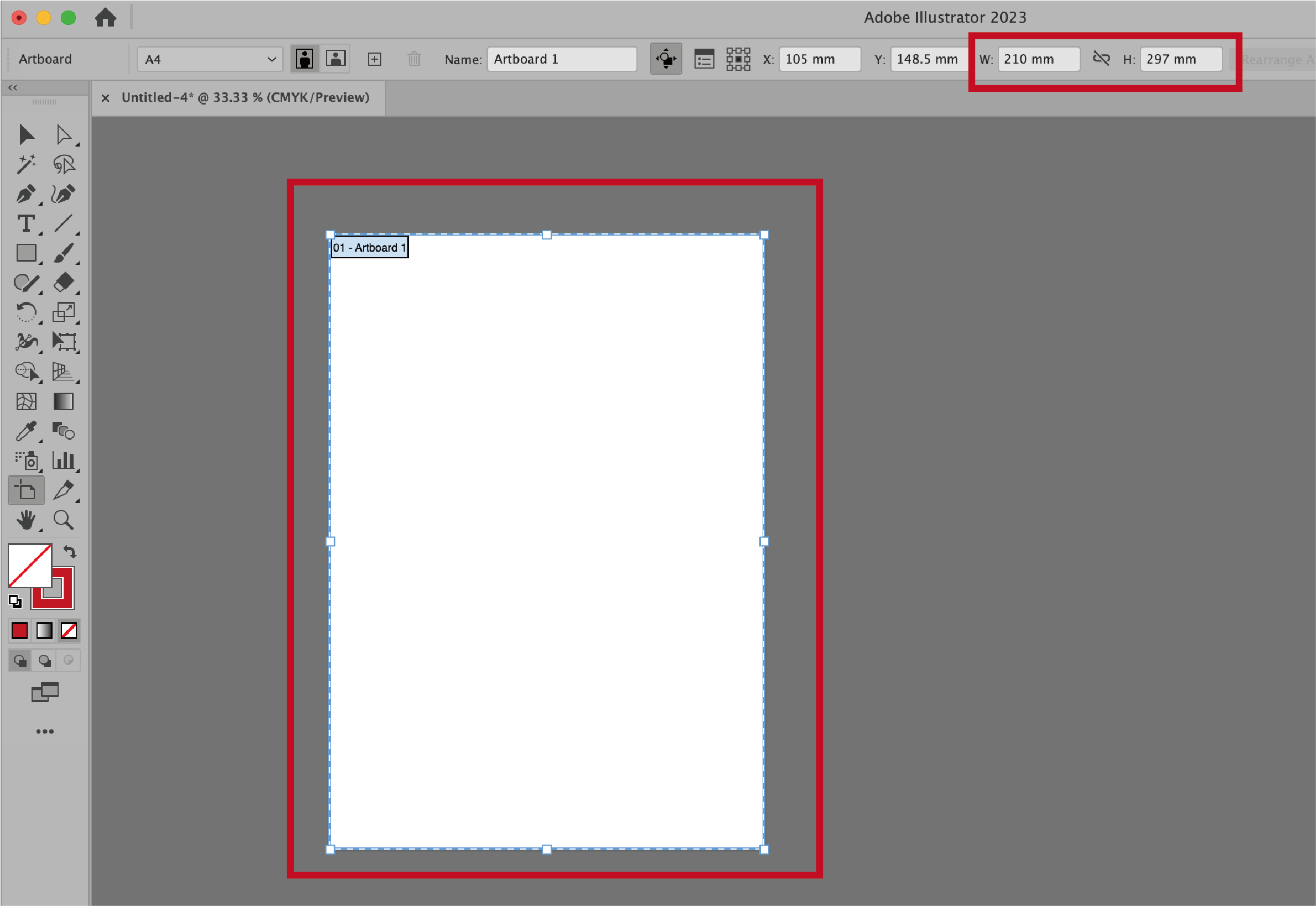아트보드(artboard)는 한글판에서는 '대지'라고 불립니다.