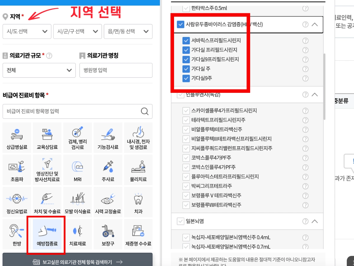 아래 건강보험심사평가원 사이트로 들어가셔서 비급여 진료비용 정보를 확인할 수 있으니, 인근 병원의 접종 비용을 먼저 확인하신 후 방문하실 것을 추천드립니다.