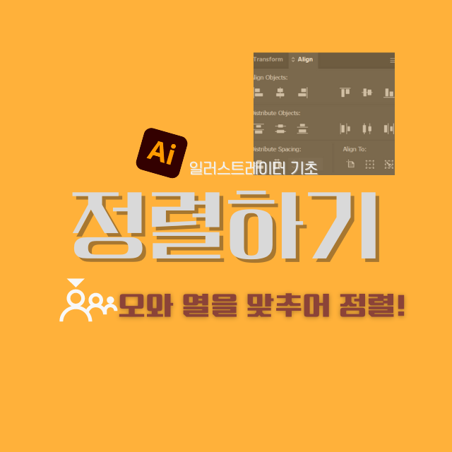 정렬하고싶은 오브젝트들을 선택 도구로 드래그해 주면 상단 부분에 정렬 아이콘이 나타납니다. 상단 바에 나오는 앞에 있는 6개는 정렬 패널의 윗줄 6개 정렬 기능과 같습니다. 상단 부분 혹은 정렬 패널 둘 중 아무 곳에서나 원하는 기능을 클릭해 주시면 됩니다.